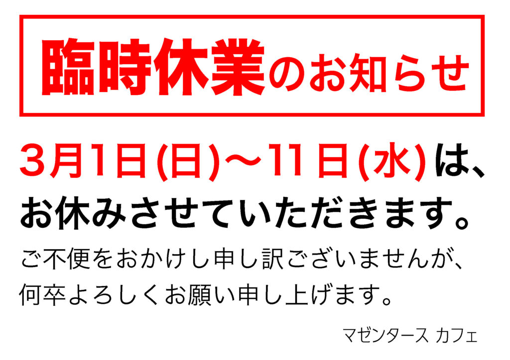 臨時休業のお知らせ